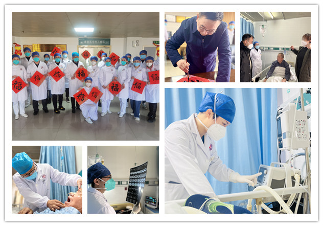 在这样一个辞旧迎新、吉祥喜庆的日子里,谭李红院长带领院领导们到新冠重症及亚重症病房看望未出院的患者,慰问临床一线医务工作人员,借此机会,谭院长亲自为科室送“福”字,这遒劲有力的福字饱含深情,让在场的所有患者及医务人员都感受到了浓浓的“年味”。回家过年, 这平凡的愿望,值得每一个省医人为之付出所有努力。(康复三病区 罗皖湘)