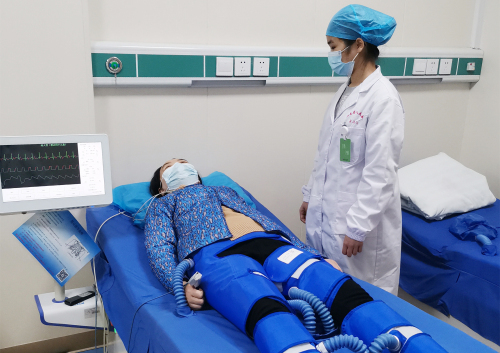 “运动疗法作为心脏康复的核心,对于患者恢复健康有非常积极的意义。”董波主任介绍,有氧运动在心脏康复过程中极其重要,而体外反搏治疗可以作为运动训练的替代方法。它是一种无创性治疗方法,其原理是采用气囊包裹人体下肢和臀部,通过电脑跟踪心电波,以人体的心电波为触发信号对压缩袖带进行充气放气,使血液向主动脉返流,促进血管生成和增加心、脑、肾等各脏器的血流灌注,达到改善血管功能和代谢功能的目的,提高免疫力。