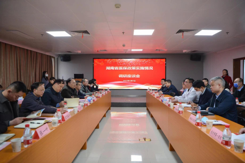 2月1日下午,湖南省医疗保障局党组成员、副局长伍国用,长沙市医疗保障局党组成员、副局长易学思等一行16人来我院开展“湖南省医保政策实施情况调研”工作。我院院长谭李红、副院长秦月兰、相关部门负责人以及10家省部级、市级、民营三级以上医院参加了调研座谈会。