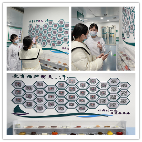 30岁的何女士是一位新晋“糖友”,两天前因体检发现血糖异常,在湖南省人民医院内分泌一病区住院进一步诊治。何女士虽然对糖尿病早有耳闻,但是如此“亲密接触”还是略显不安。因此,入院后她最关心的问题多集中在“什么能吃?什么不能吃?”等方面。责任护士在得知何女士的需求后,引导她来到病房“糖友”专属的健康教育墙旁。在拿出手机扫一扫后,通俗易懂、生动有趣的糖尿病宣教动画视频就展现在眼前,让何女士十分惊喜,立马把墙上的二维码一个个拍下来保存。通过观看宣教视频和责任护士深入浅出的讲解后,何女士心里的困惑一一解除,脸上的愁容也消散了。
