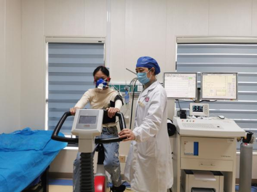 心内四病区董波主任介绍,心肺运动试验是心肺耐力的试金石。能够评价心脏和呼吸系统功能,评估活动耐量,而且是安全运动的依据。既往心肺运动试验检测以有心血管疾病及高危因素的中老年患者居多。新冠疫情以来,更多的人群认识到健康的重要,存在能不能运动等困惑。对于新冠病毒感染康复期的人群,有氧运动是进行心肺功能锻炼较好的方式。在保证安全的情况下,心肺运动试验能帮助病人精准评估运动耐力。因此,在“阳康”后如有胸闷、心悸、疲乏或想进行运动计划前,建议先做一个心肺运动试验,明确心肺耐力情况,从而制定合理的、科学的有氧运动处方。