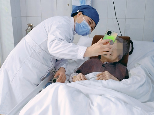 病区自2022年伊始,成立了“视频连线,关爱互牵”项目,入院时,指导患者家属保存病区电话、添加病区微信,便于随时与医护沟通联系,咨询了解病情;每周三16:00为有需要的患者拨通其家属视频或拍摄时长约1分钟的小视频发送给家属;由整体陪护照看的患者,应家属需求,由陪护组组长随时与家属电话、视频联系。截止到目前,该项目已服务近百例有需要的高龄患者。(骨科五病区 文字:王凯伦 王桂香/图片:周锐)