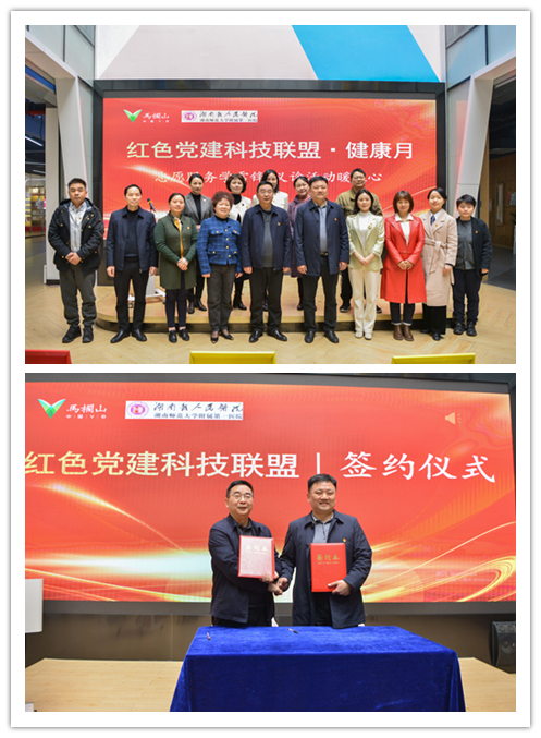 谭李红、邹犇淼分别代表湖南省人民医院与马栏山视频文创产业园,共同签订红色党建科技联盟协议。双方将在优势互补、资源共享、发展互促的原则下,打造“党建+健康”的特色品牌,开展系列交流互动活动,为双方高质量发展助力赋能。