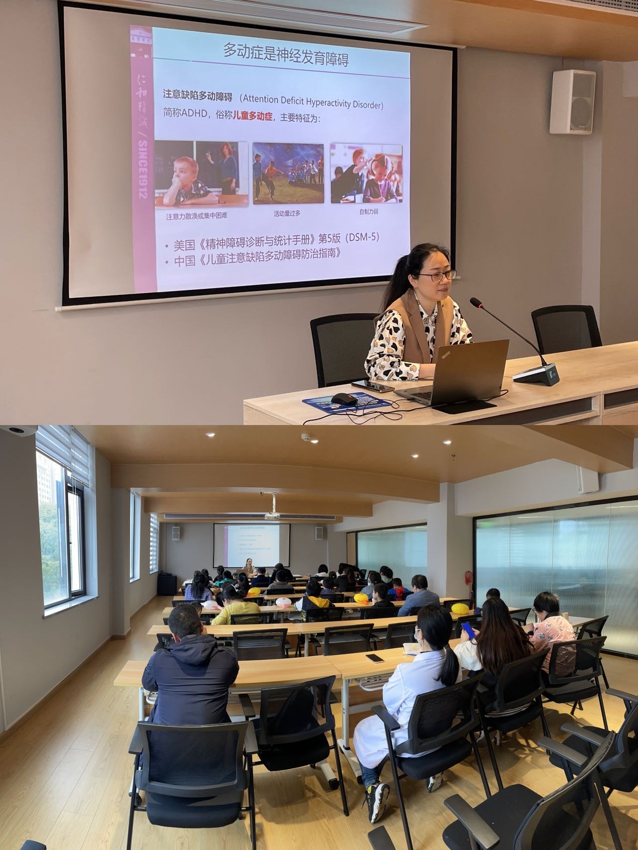 活动现场,儿九病区潘丽博士开展了以“多动症”为主题的科普讲座,用通俗易懂的语言阐述了什么是多动症,孩子得多动症的原因和典型症状,说明了多动症儿童存在的学习问题、人际关系问题等可能对儿童造成的危害,厘清了多动和正常孩子活泼好动的区别,并对父母该如何教育患有多动症的孩子做了详细的讲解。