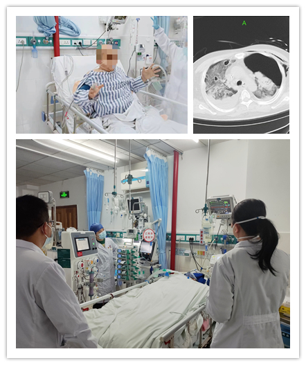 家住涟源的55岁陈先生一个多月前在家做事时不小心弄伤了右脚大拇指。因只是一个约2cm的小伤口,陈先生并没重视。数日后,陈先生出现皮肤感染并发热,还以为是前些日子“阳了”后没有痊愈。但随后陈先生逐渐出现反复高热,伴有咳嗽、乏力、气促等症状。在当地医院检查后发现其肺部感染、肾功能不全、新型冠状病毒感染。由于患者气促逐渐加重,病情进展迅速,家属将其转往湖南省人民医院马王堆院区救治。