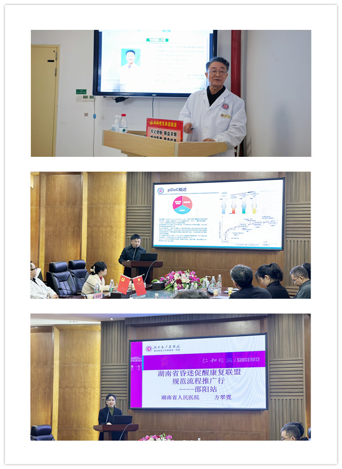 义诊活动结束后,方翠霓主任和胡林旺主任分别就“湖南省昏迷促醒联盟规范流程”和“慢性意识障碍与外科治疗”进行讲座,为邵阳市中心医院的医护团队传授了宝贵的临床经验和前沿的专业知识。