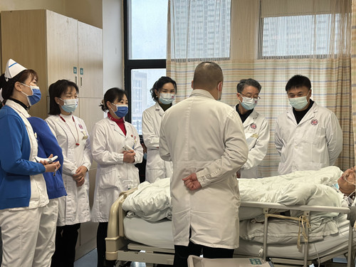 活动中,邵阳市中心医院联合专家团队对一例昏迷患者进行查房。康复医学科宋涛教授、康复一病区主任方翠霓、神经外二科主任胡林旺听取了管床医生病历汇报,并查阅了患者的辅助检查报告,床旁对患者进行体格检查,询问患者病史,三位主任分别从不同角度讲解了患者接下来的诊疗思路、病情观察重点和治疗护理要点,提出了最佳治疗方案,并向大家详细介绍了这一类慢性意识障碍患者如何进行精准评估,规范全面治疗。