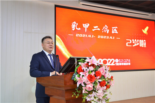 2023年4月3日下午,湖南省人民医院乳甲外科二病区在马王堆院区俱乐部二楼举办了2周年庆典,此次活动由马王堆院区执行院长张超杰主持,湖南省人民医院党委书记谭李红,院办、医务部、护理部、医疗安全办、纪检监察办、外科临床科室主任、护士长及马王堆院区相关职能部门负责人及乳甲二病区全体工作人员齐聚一堂,共同庆祝乳甲外科二病区的2岁生日。