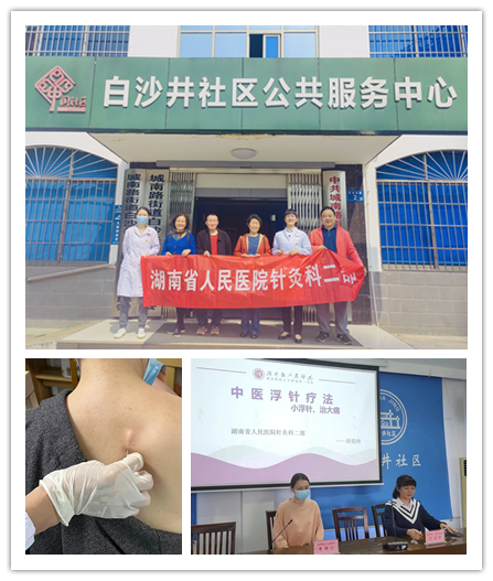 在此次义诊活动中,浮针疗法是一大亮点。封主任通过PPT的形式生动形象地给居民介绍了浮针疗法,并现场为颈肩部酸胀疼痛阿姨进行诊疗。通过一次浮针治疗后,阿姨颈肩部酸胀疼痛明显缓解,惊叹浮针疗法的神奇,露出了欣慰的笑容。浮针是在传统针灸学基础上发展起来的一种现代治疗方法,通过使用一次性浮针针具在皮下针刺,并配合导引再灌注动作的现代针刺疗法,是对传统针灸继承和发展,是针刺、经络、导引的完美融合。浮针疗法不像传统针刺一样深入多层组织,仅仅作用在浅筋膜,力专效宏,针在浅层,功在深层,临床上的不少疑难杂症都是浮针的适应症。具有适应症广、疗效快、操作方便、经济安全、无副作用等优点。