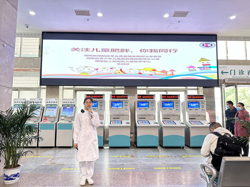 肥胖被世界卫生组织确认为十大慢性疾病之一,儿童肥胖隐藏着巨大隐患,不仅影响外观,还会危害儿童身体健康与生长发育。2023年5月11日是“世界肥胖日”,5月9日-11日,湖南省人民医院儿童医学中心儿童内分泌心血管肾脏风湿科举办大型公益活动周,走进社区和学校举办科普讲座。5月11日,在医院门诊大厅举办义诊科普及健康讲座活动,助力儿童肥胖防治。