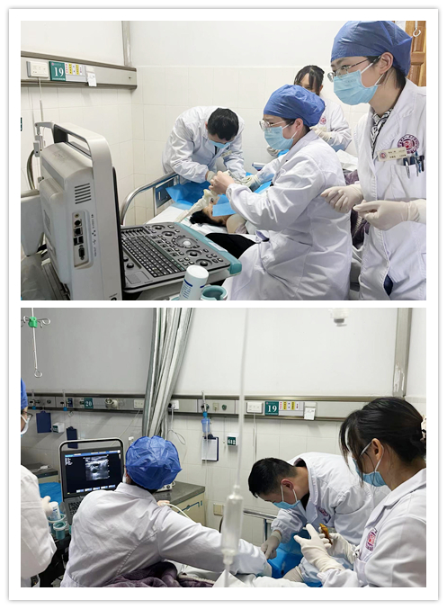 基于患者多次置管,可供置管的优选位置已寥寥无几。为了提高置管成功率,申邵霞医生联合床旁B超查看患者右颈静脉血管情况,发现患者右颈内静脉因两次插管损伤,不能继续插管。在和肾内三病区主任吴鹰、上级医生张黎一起讨论相关置管方案后,决定在B超引导下行左侧颈静脉临时血透管。吴鹰主任在B超引导下20分钟顺利完成置管,并立即为患者行床旁血透治疗,10小时后顺利下机,血钾降至正常,且其胸闷气促、水肿情况明显好转,转危为安。目前,患者现已置长期管,为持续治疗做好准备。