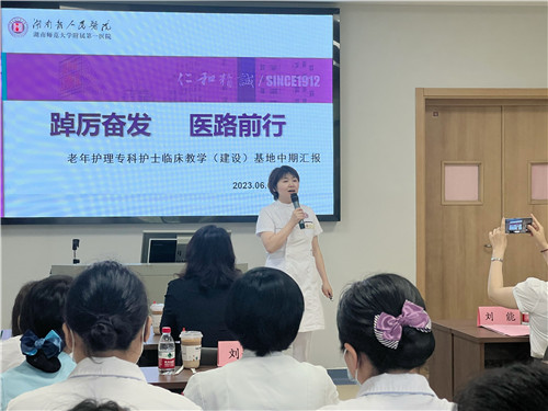 为进一步加强中华护理学会专科护士临床教学基地建设,保证临床教学质量,促进专科护士培训基地规范化、标准化、同质化发展。2023年6月2日,中华护理学会委派中南大学湘雅医院护理部刘能科护士长、湘雅三医院护理部张秋香科护士长两位督导专家对我院老年护理专科护士京外临床教学基地教学过程进行现场督导。