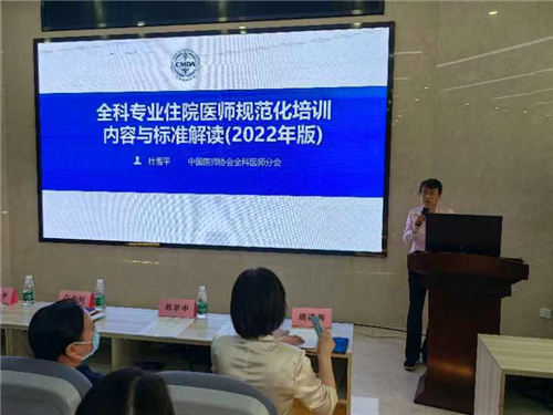 师资培训班分别就全科医学师资的带教实践经验分享、三定四动框架下的融合式医院社区基地全科师资培养模式、靶向思维视角下一全科医生专长化教育的意义、全科医生为什么做科研、从全科住培评估看住培内涵建设、专科医生的全科带教能力培养、全科教学查房常见问题分析、住院医师规范化培训大纲(2022年)解读、公共卫生技能考核指标解读、基层实践基地师资带教等方面出发对全科医学带教师资进行培训,全院共200余位全科带教师资参与培训。