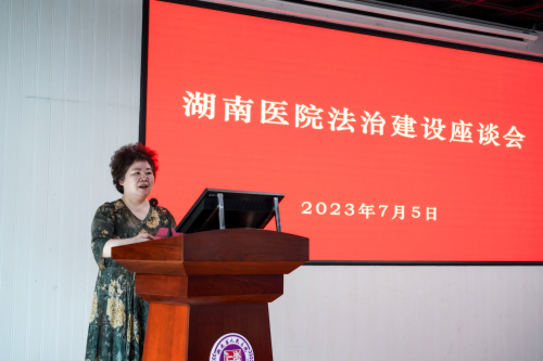 龚向光副司长充分肯定了湖南医院法治建设取得的成果并强调,医院要高度重视法治机构建设和法治队伍建设,医院法治建设是底线也是目标,是医院高质量发展的基本保障;要进一步运用法治思维,贯彻好依法治国理念,坚持系统思维,加强综合研判和系统应对,有效防范医院法律风险;做细做精医院法治工作,有所侧重、精准施策满足差异化法治需求,及时将新出台的法律法规以及规范性文件内化于医院管理制度,跟踪医务人员诊疗行为,精准发现和防范各种法律风险。