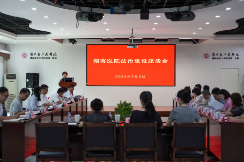 7月5日,湖南省医院法治建设座谈会在湖南省人民医院马王堆院区举行。国家卫生健康委法规司副司长龚向光、法规司综合处处长白雪、中国政法大学讲师谢尧雯一行我院调研指导法治建设工作。省卫健委党组成员、副主任陶学永,法规处处长曹跃斌等陪同调研,湘雅三医院、委直属单位、长沙市卫健委、市属医院等相关负责人参加座谈会。