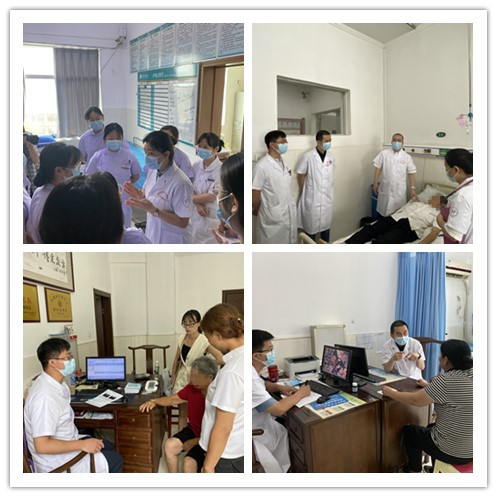 湖南省人民医院神经内科赵志鸿教授、高小平教授、余翔教授、曾凯敏副教授、高辉副主任护师全程参加了湘阴县中医院内科病房的晨交班,对交班的内容和内涵提出了进一步的要求,全面传授了省医卓越服务查房的标准,共同探讨基层卒中急救、转诊和二级预防的规范化诊疗相关问题,推进基层医疗机构血管健康管理体系与能力的建设。赵志鸿教授一行对多名神经内科的患者进行了医护一体化的教学查房,针对不同的疾病的诊断、治疗、护理等方面的问题提供专业的诊疗方案,并给予详尽的用药及生活方式指导。余翔教授和曾凯敏副教授则为门诊神经内科患者进行了义诊,并在义诊过程中将一名脑血管狭窄90%的患者及时转诊到省人民医院神经内科,为患者提供绿色通道。