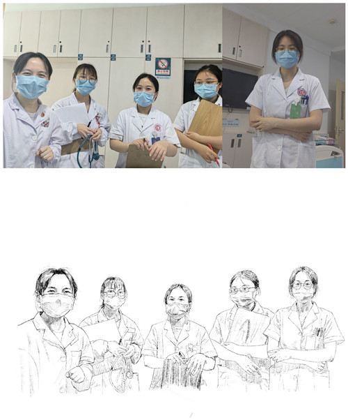 陈主任的话语让小张重燃希望,悲观的情绪被一扫而光。 通过一系列的治疗,小张病情明显好转,在住院期间,他感受到了如家般的温暖,医生护士对他照顾有加,一直为他加油打气,穿着白大褂、带着口罩的医护人员,就是他心里的“白衣天使”。从小就学习绘画的小张想要用自己的专业技能表示感谢,便“偷偷”拍下医护的工作瞬间,再画下来送给这些可亲可敬的人。