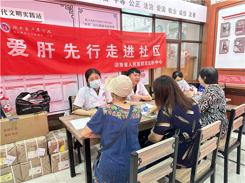 在第13个世界肝炎日到来之际,7月28日上午,湖南省人民医院肝病内科医护团队在化龙池社区公共服务中心开展了“爱肝护肝,你我同行”健康科普与义诊活动,呼吁人人关注肝脏健康。今年肝炎日的主题是“坚持早预防,加强检测发现,规范抗病毒治疗”。旨在提高居民对肝炎防治的关注度,促进肝炎的早预防、早检测、早治疗等相关措施的落实, 努力减少或消除肝炎对人民健康的危害。目前全球仍有超过3.5亿人患有病毒性肝炎,我国便是病毒性肝炎疾病负担最重的国家之一。我国是病毒性肝炎危害最严重的国家之一,无论是感染人数还是疾病严重性,都是影响国人健康水平的重大疾病。近年来,我国在肝炎防治方面取得巨大成就,已具备相关防治技术和能力,但由于肝炎感染者的基数大、疾病负担沉重等因素,肝炎防治仍然任重道远。