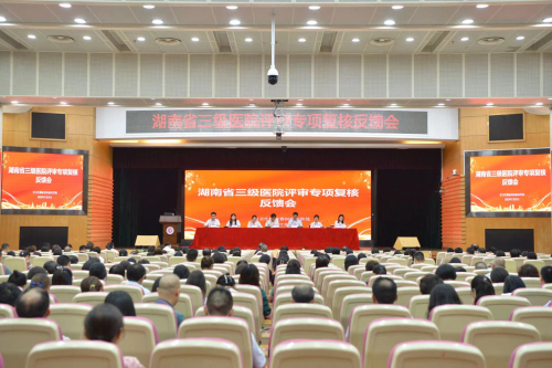 7月27日下午,湖南省卫生健康委医政医管处在我院召开“湖南省三级医院评审专项复核反馈会”,省卫生健康委党组副书记、副主任祝益民,医政医管处处长陈鸿君,评审专家组领队、省儿童医院副院长卢秀兰,中南大学湘雅医院胡成平、省儿童医院杨梅雨、中南大学湘雅二医院李亚敏、方平飞等四位评审专家出席会议。省人民医院全体在家领导、中层干部及陪检工作人员参加会议。会议由陈鸿君主持。