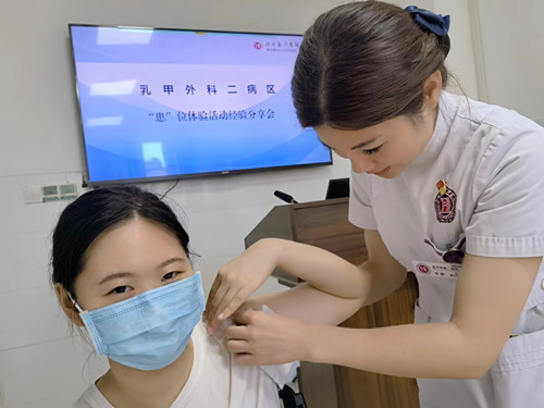 “经过亲身体验,才更能理解患者的感受。”为了让医护更注重患者体验与感受,湖南省人民医院乳甲外科二病区开展了一次特殊的体验会,医务人员充当术后患者,把腋窝入路腔镜后的贴敷黏在备皮后的腋窝处,体验一日感受,然后分享感受,再讨论解决方法。