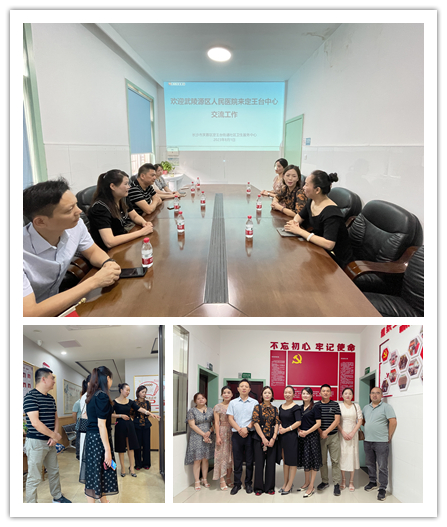 8月1日,由社会医学部牵头,我院医联体单位武陵源区人民医院邓美英副院长一行来到我院城市医联体单位芙蓉区定王台社区卫生服务中心学习交流,定王台社区卫生服务中心党委书记唐芳等出席交流会。