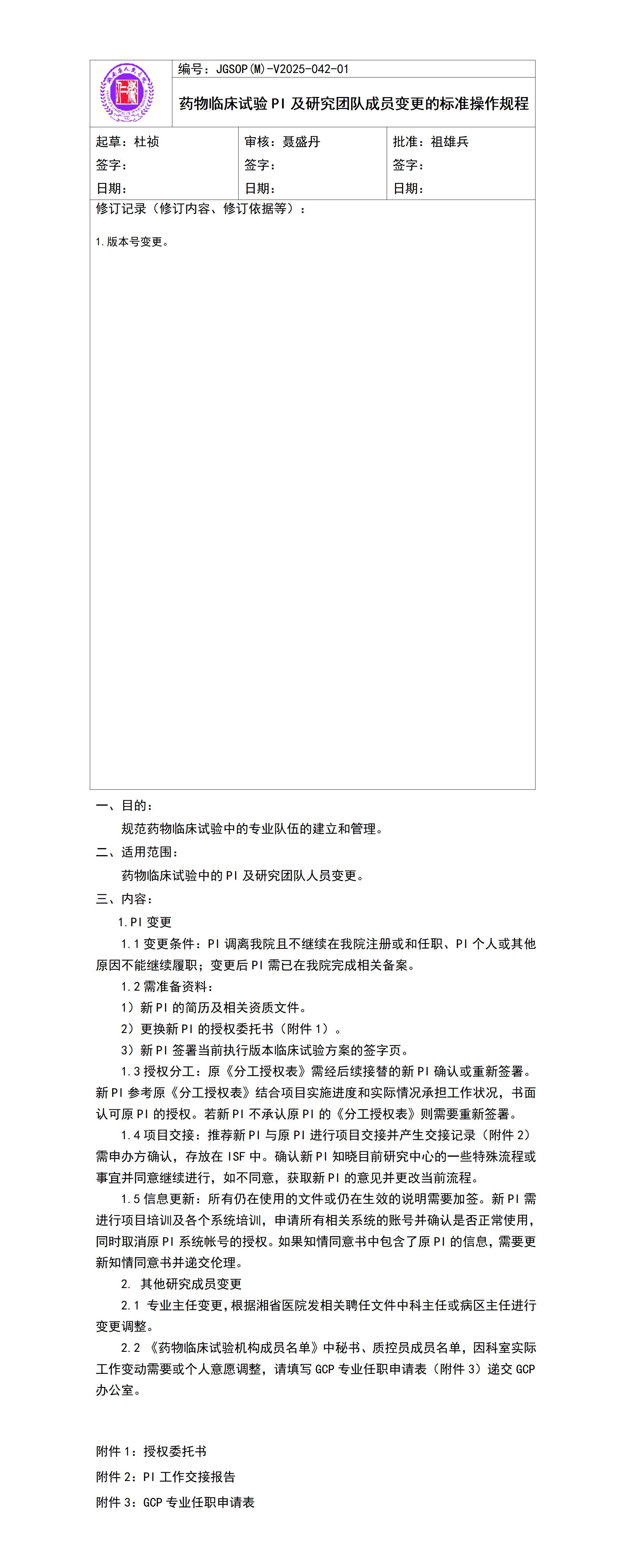 药物临床试验PI及研究团队成员变更的标准操作规程