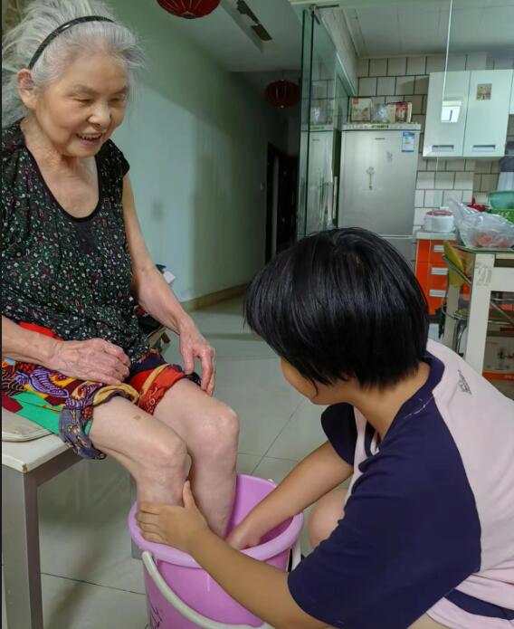 今夜又下着小雨,雨借风势把思念轻送。屋内我刚满十一周岁的女儿仰起她稚嫩的小脸,一边跟慈爱的奶奶撒娇,一边也在为她敬爱的奶奶洗脚,尽她的孝道……