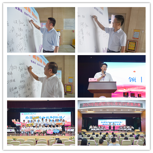 活动开始前,我院党委书记赵卫华、院长肖亚洲带头在“护佑健康、感控先行”主题倡议书上签名承诺,副院长朱文辉、成伟出席比赛现场。