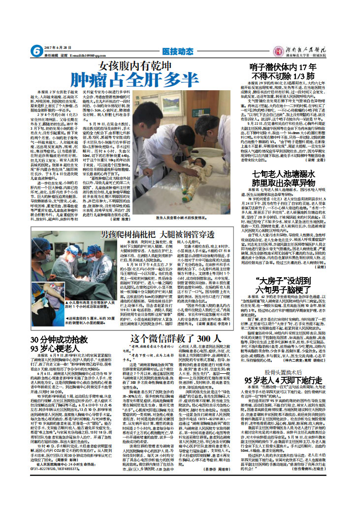 “因意外伤害入院的患儿约占小儿骨科住院总人数的三成,”肖晟提醒,家长和学校应加强对未成年人的安全教育,以防意外伤害,避免遗憾终身。(梁辉 莫喜红 李范玲)