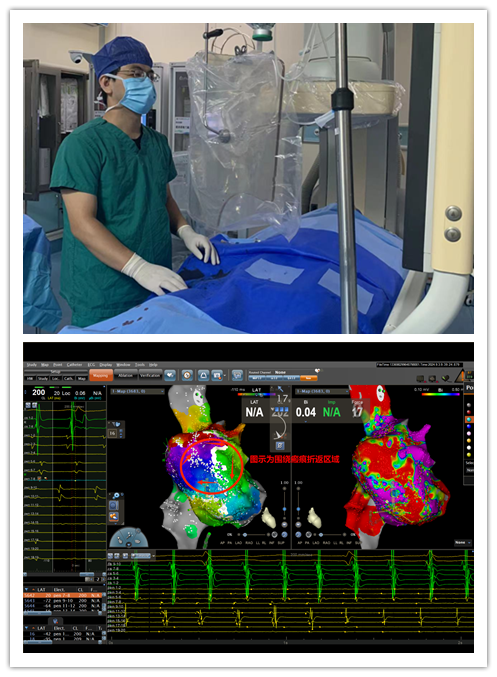 入院后,由于小丽的病情复杂,心内科心律失常团队对其进行全面评估,详细分析病史资料,制定了精准的治疗方案,并经患者及家属同意,决定实施射频消融术。术中,唐毅副主任医师为其进行详细的标测,证实该房扑为围绕手术疤痕相关的心房扑动,在消融右心房疤痕到下腔静脉的过程中,房扑终止,患者心律恢复正常,后反复验证,未再诱发心动过速。术后,患者恢复良好,已顺利出院。