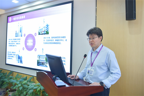 在专题座谈会上,成伟副院长介绍了我院公立医院健康管理的具体做法和取得成效,同时提出制约医院健康管理工作发展的难点堵点及所需的政策支持。康复医学科主任兼康复三病区主任蔡华安介绍了我院康复医学科发展概况及未来发展目标及方向。随后,双方深入剖析、细致梳理了康复医学科发展需求,并就康复医学科未来发展趋势及建设目标进行深入探讨。