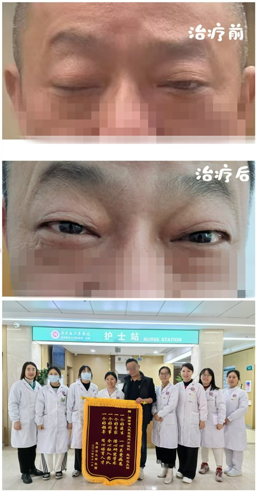 入院后,经过一系列检查及眼科、神内科多科会诊后,确诊患者为2型糖尿病性动眼神经麻痹。在赵新兰主任医师团队积极加强对台先生的健康宣教,强化控制血糖,改善循环、营养神经以及配合针灸理疗等一系列中西结合治疗后,患者终于可以正常睁开眼睛,复视情况也得到明显缓解。出院前,台先生表示,经过这次住院,今后一定注意生活习惯,规律就诊,控制血糖,防治并发症。