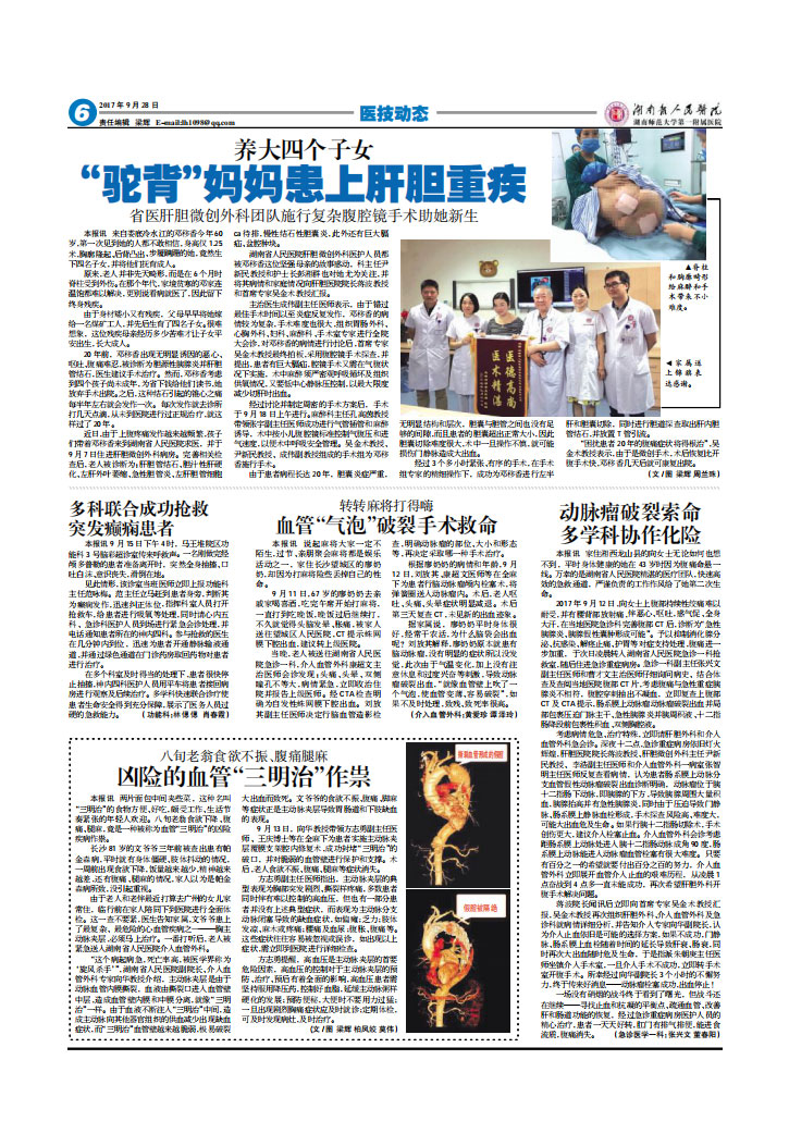 湖南省人民医院肝胆微创外科医护人员都被邓移香这位坚强母亲的故事感动,科主任尹新民教授和护士长彭湘群也对她尤为关注,并将其病情和家庭情况向肝胆医院院长蒋波教授和首席专家吴金术教授汇报。