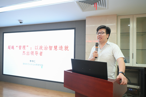 湖南师范大学公共管理学院政治学系副主任李中仁教授正在授课