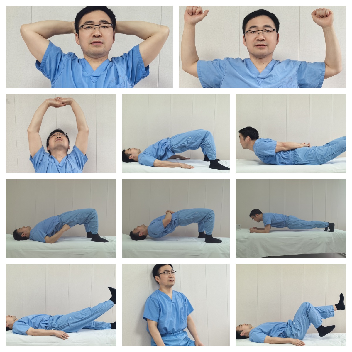 动作一:臀桥 仰卧屈膝,双脚与肩同宽踩地,收紧核心,臀部发力抬至躯干与大腿呈直线,顶峰收缩2秒后缓慢落下,每天3组,每组15次。动作五:平板支撑 肘撑,身体成直线,核心收紧,30秒起,逐步延长,每天3组,每组3次。
