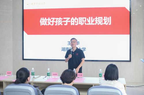 活动特邀湖南师范大学教育科学学院教授、博士生导师王卫华担任主讲嘉宾。王教授针对家长普遍关心的升学、择业、心理等几个问题,从家长和孩子两个视角出发为大家支招。通过“认识你和你的孩子”“促进孩子的学习”“克服孩子的焦虑和厌学”“孩子职业规划的方法”等四个方面与家长们进行亲切互动,并分享了“陪伴”“安全”“兴趣”“交流”四大锦囊助力家长们用“用科学规划”点亮孩子未来。