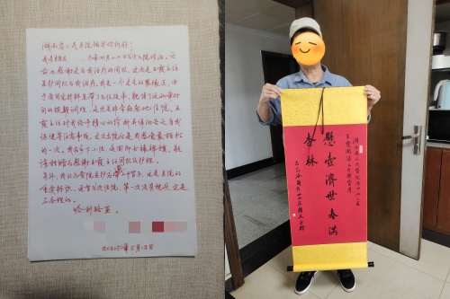 近日,湖南省人民医院内分泌一病区王霞主任医师团队收到了一面特别的锦旗,锦旗上“悬壶济世 春满杏林”出自一位七旬老人之手,老人家亲自装裱,特意一大早送到了医院。