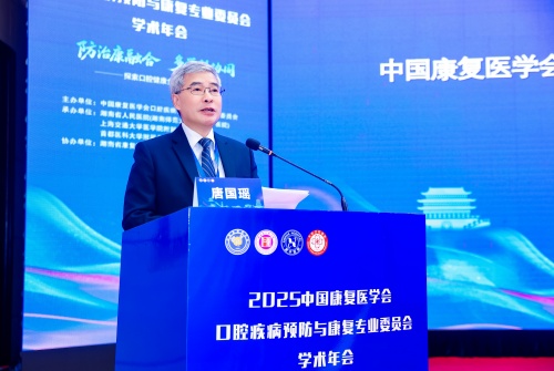 中国康复医学会口腔疾病预防与康复专委会主任委员、上海交通大学医学院附属新华医院前任党委书记唐国瑶在开幕式上讲话。