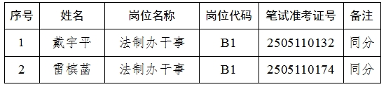 根据《湖南省卫生健康委直属事业单位2025年公开招聘公告》要求,我院现场资格复审工作已完成,现有法制办干事岗位1名入围资格复审人员放弃资格。现对相关岗位按笔试成绩排名进行一次递补,请递补人员于2025年5月28日(周三)下午17:00前携带相关资料到湖南省人民医院天心阁院区综合楼1006人力资源部办公室进行资格复审,逾期视为自动放弃递补资格。递补名单如下: