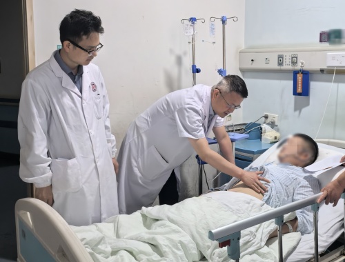 小张三个月前因凶险的急性坏死性胰腺炎在鬼门关走了一遭,在家附近医院经救治才脱离危险。没想到胰腺炎引发胰腺体尾部假性囊肿,囊肿迅速长大,几乎占据了腹腔的“半壁江山”,不仅将胃、十二指肠等重要脏器挤压变形,更随时有破裂引发感染、大出血,小张再次面临致命风险。