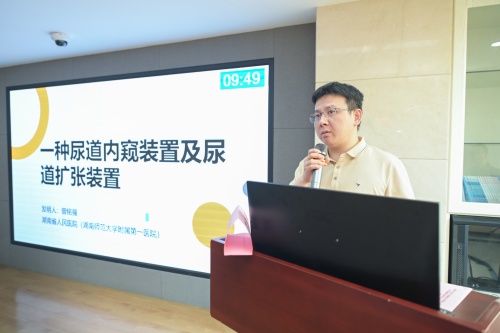 会议进行了项目签约、成果展示、自由洽谈等环节,10支科研团队轮番登台,以“10分钟展示+5分钟交流”形式推介创新成果:祖雄兵教授团队研发的“无创预测膀胱癌进展与生存的AI系统”,通过多模态数据分析实现精准预后评估,为个性化治疗提供科学依据;曾铭强教授团队展示的“尿道内窥装置及扩张装置”,以微创设计解决传统器械操作疼痛感强、视野受限等痛点;孙艺芩护理团队带来的“自润滑导尿管”,通过材料创新降低患者置管痛苦,获企业代表高度关注。