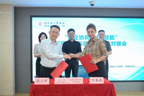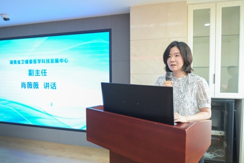 2025年7月2日下午,由湖南省人民医院主办的“医企协同·创新赋能”医疗器械科技成果精准对接会在天心阁院区举行。会议聚焦医疗器械领域产学研深度融合,通过政策解读、成果展示、项目签约及自由洽谈等环节,搭建医院与企业高效对接平台,助力国产医疗器械创新转化。湖南省科技厅科技成果转化促进处副处长王帅,湖南省卫生健康委医学科技发展中心副主任肖薇薇,科技发展中心成果转化部科长陈凡出席会议 ,湖南省人民医院院长肖亚洲、副院长祖雄兵及科研部、科研团队和22家企业代表共百余人参会。