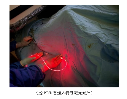 2.精准“照光”:经过特定时间(通常24-48小时)后,医生通过微创介入手段(如借助原有引流管通道),在影像设备(如DSA)的精准引导下,将一根细小的激光光纤送达肿瘤部位。