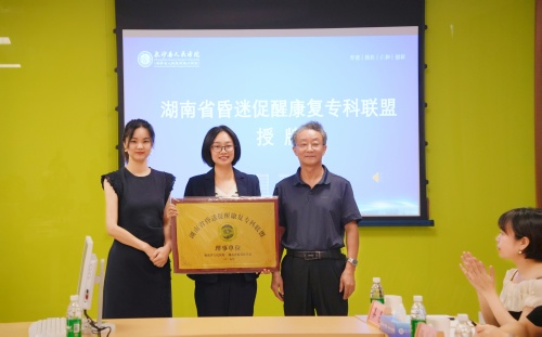 会上,宋涛教授与方翠霓教授将“湖南省昏迷促醒康复专科联盟理事单位”牌匾授予长沙县人民医院。