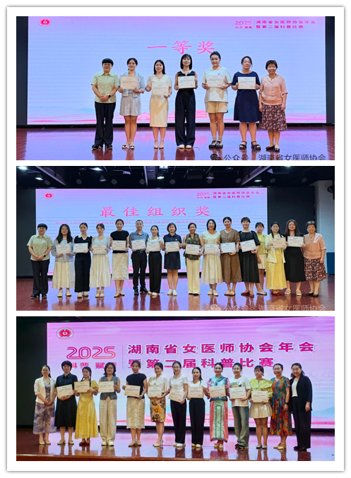 9月4日至5日,湖南省女医师协会2025年年会暨第二届科普比赛在长沙隆重举行。湖南省人民医院选送的科普作品表现突出,凭借专业的内容与创新的形式共斩获1个一等奖、3个二等奖及“最佳组织奖”,充分展现了医院女医师团队在医学科普领域的深厚实力与积极风采。