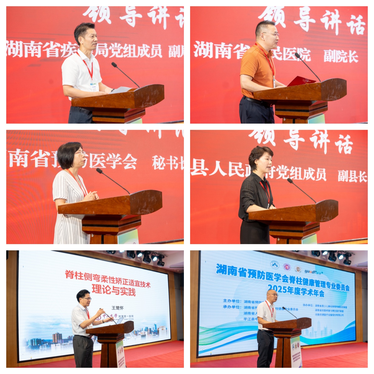 2025年10月11-12日,由湖南省预防医学会主办、湖南省人民医院康复医学科及平江县中医医院承办的湖南省预防医学会脊柱健康管理专业委员会2025年度学术年会在岳阳平江顺利召开。本次年会以“医防融合、医防协同”为主题,汇聚了省内外脊柱健康管理领域的知名专家、学者及业界精英,共同探讨脊柱健康管理的最新理念、技术与发展趋势,旨在提升湖南省脊柱健康管理水平,推动学科发展。