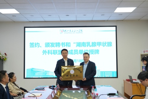 活动伊始,湖南省人民医院乳腺甲状腺外科学科主任张超杰教授与株洲331医院院长何鹏云共同签署合作协议,标志着株洲331医院正式成为湖南乳甲外科联盟成员单位。张超杰教授介绍,联盟将通过技术帮扶、人才培训、双向转诊等机制,推动优质医疗资源下沉,让株洲患者享受同质化诊疗服务。同期揭牌的"湖南省人民医院乳腺甲状腺外科张超杰教授工作室"引发广泛关注,该工作室将定期派驻专家开展门诊、手术及教学查房,重点培养株洲331医院乳甲外科青年医师团队。"工作室不仅是技术输出的平台,更是两院科研协作的桥梁。"张超杰教授表示,未来将联合开展临床多中心研究,提升区域乳甲疾病诊治水平。更令人瞩目的是,株洲331医院同步加入"全国百家乳甲AI联盟",成为湖南省首批应用人工智能辅助诊断系统的地市级医院。该系统通过深度学习技术,可实现乳腺及甲状腺超声的智能判读,提高诊断效能。"