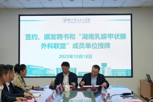2025年10月18日,株洲331医院学术报告厅内气氛热烈,湖南省人民医院乳腺甲状腺外科与株洲331医院联合举办的"乳甲外科诊疗能力提升专题活动"顺利举行。活动聚焦乳甲疾病诊疗技术革新与区域协作,通过联盟签约、工作室揭牌、AI技术赋能及学术交流四大板块,为株洲地区乳甲疾病患者带来福音。