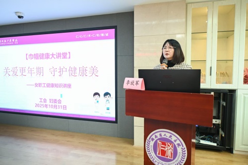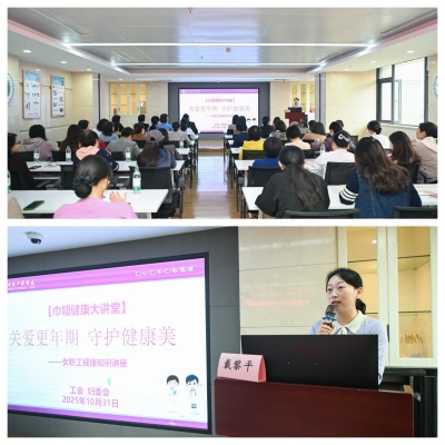 在全球妇女峰会聚焦女性全生命周期健康的热烈氛围中,为深入贯彻习近平总书记关于“保障妇女权益、促进妇女成长发展”的重要指示精神,我院工会、妇委会联合妇科、临床营养科、临床心理科,共同打造了一场“巾帼健康大讲堂”活动。10月31日上午,以“关爱更年期・守护健康美”为主题的女职工健康知识讲座在天心阁院区温情开讲,为全院70多名年龄在 40-55 岁的女职工送上专属健康守护。