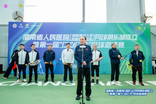 2026年1月11日,湖南省人民医院网球俱乐部成立暨第一届“仁心仁术”网球邀请赛在湖南国展网球中心举行。医院纪委书记程湘晖与70余名网球爱好职工齐聚一堂,湖南省体育局副局长陈彬、罗跃龙出席活动,共同见证这一凝聚“家文化”温情、助力职工健康的重要时刻。